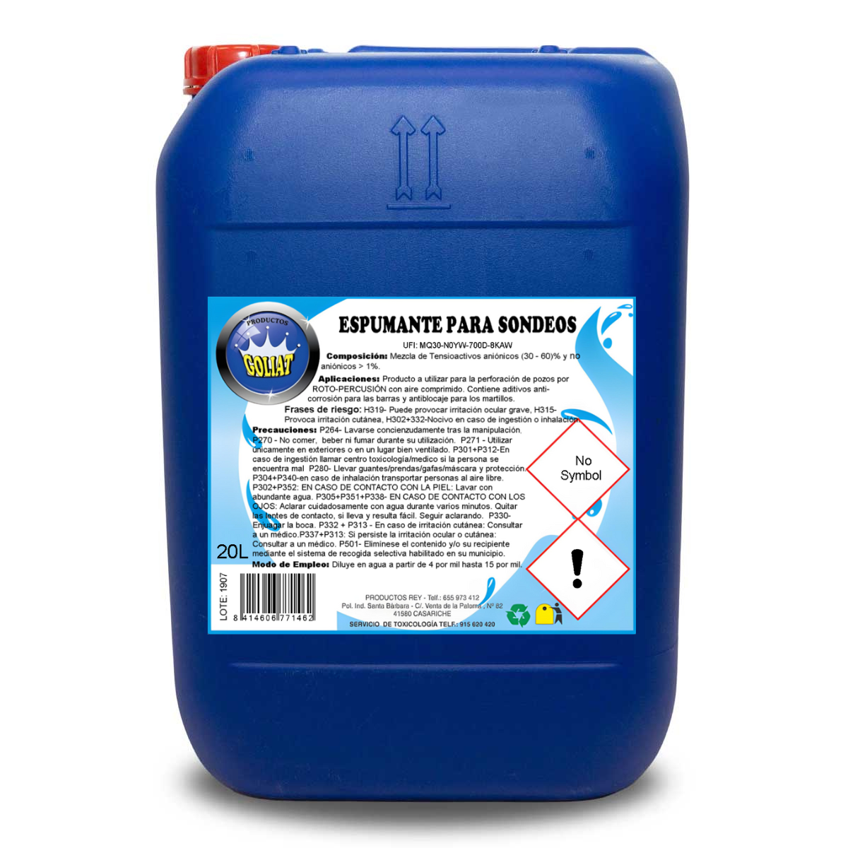 El Espumante Para Sondeos ha sido especialmente desarrollado para ser utilizado en la perforación de pozos por el método de roto-percusión con aire comprimido. Su fórmula contiene aditivos específicos que lubrican y protegen las barras de perforación, reduciendo el desgaste por fricción, así como reduce o previene el trabado de los martillos neumáticos durante la operación.