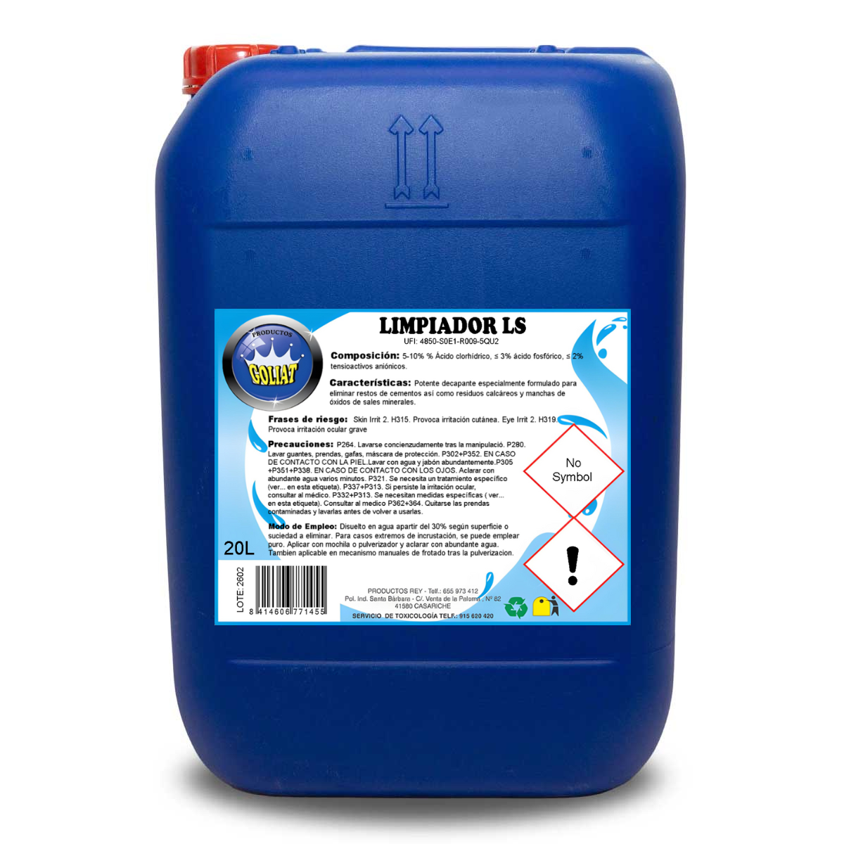 El Limpiador LS es un decapante mineral especialmente formulado para eliminar eficazmente restos de cemento, así como manchas de óxidos de sales minerales y otros residuos calcáreos incrustados en diversas superficies.